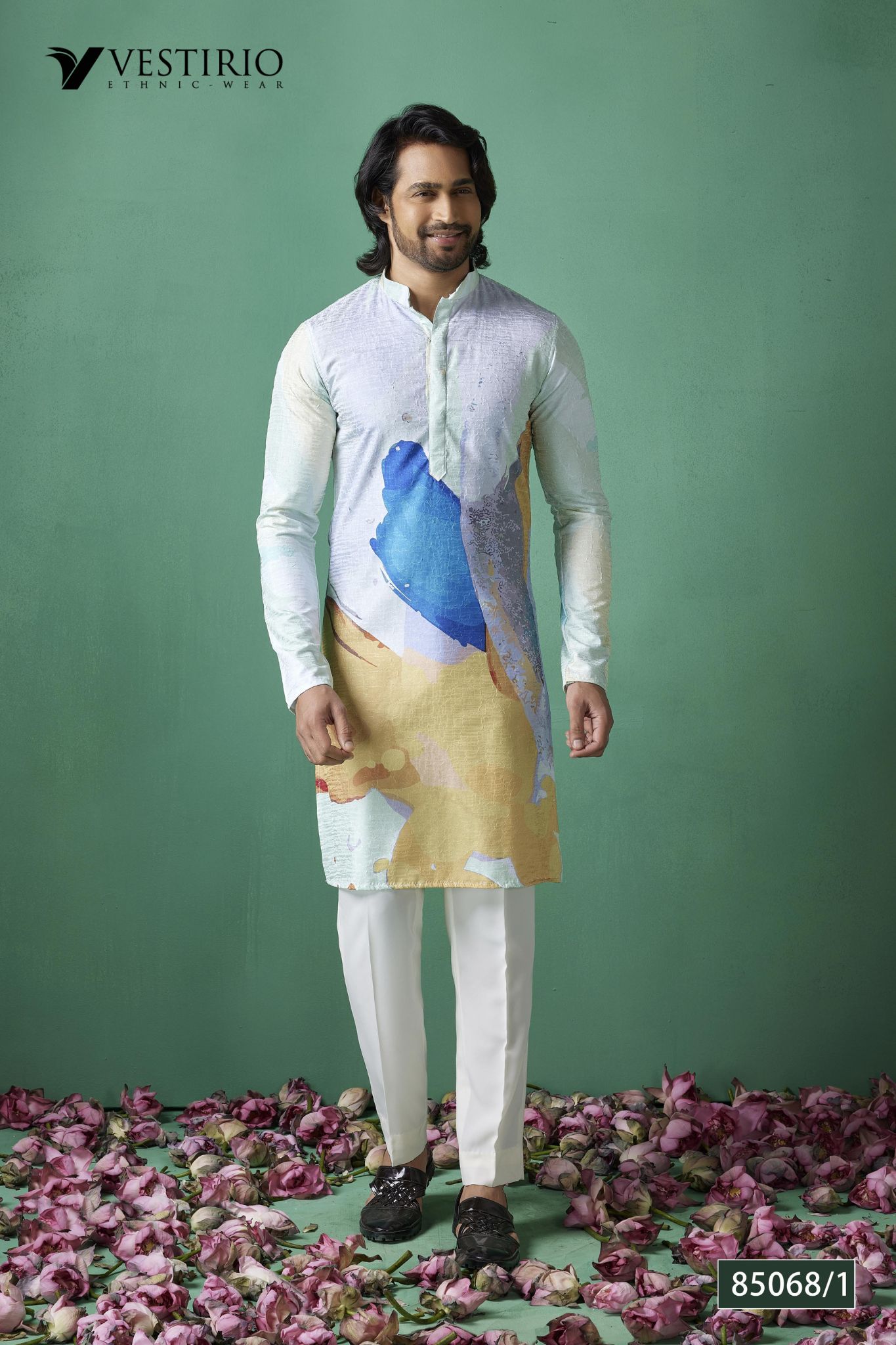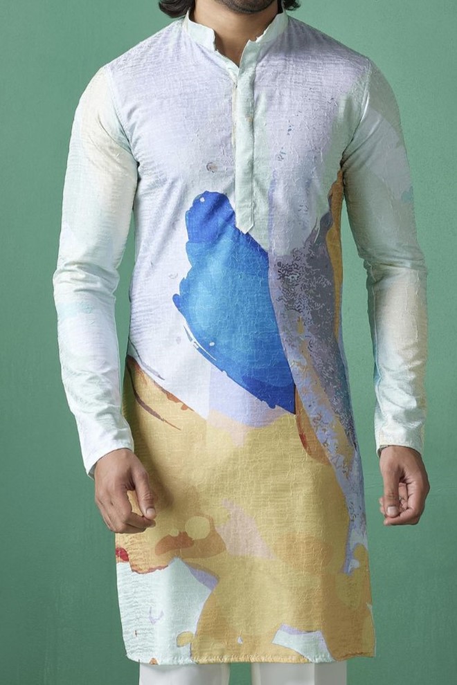 Step into the spotlight with a blend of abstract & modern shaded prints. This fancy printed kurta features Multi colored, abstract fancy print to make it look more funky and stylish. Add this to your wardrobe to elevate your look.